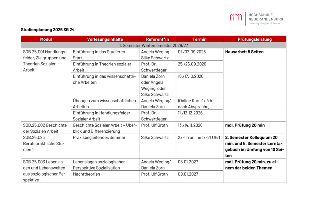 - Einladung zum berufsbegleitenden Studium Soziale Arbeit in der SG 24