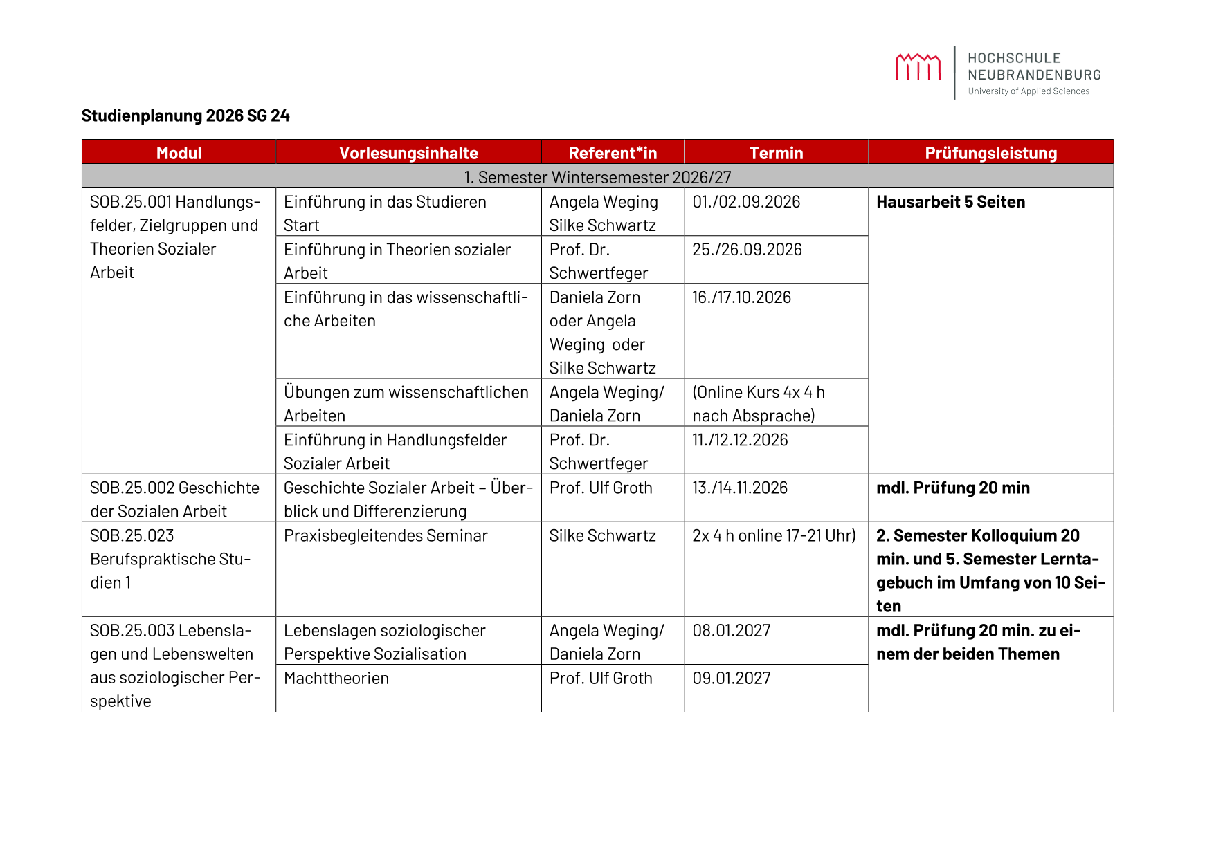 | Studiendauer: September 2026 – Februar 2030 |